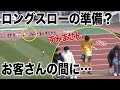 - 「すみません、失礼します」ロングスローの準備?石尾陸登選手はお客さんの間へ…