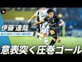 - まさに意表をついた一撃。伊藤達哉がドリブルで持ち上がり右足一閃! これでリーグ3戦連発です!