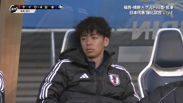 - 【画像】タイ戦の日本代表ベンチ、前半で交代した伊藤涼太郎の表情がヤバい…