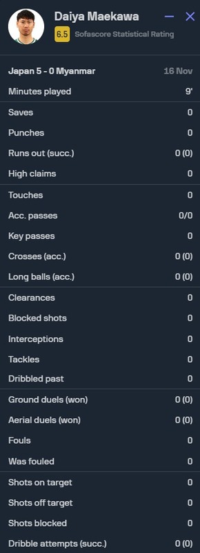 - ◆悲報◆日本代表GK前川黛也さん、W杯予選初出場もボールタッチゼロ、スタッツもオールゼロ😭