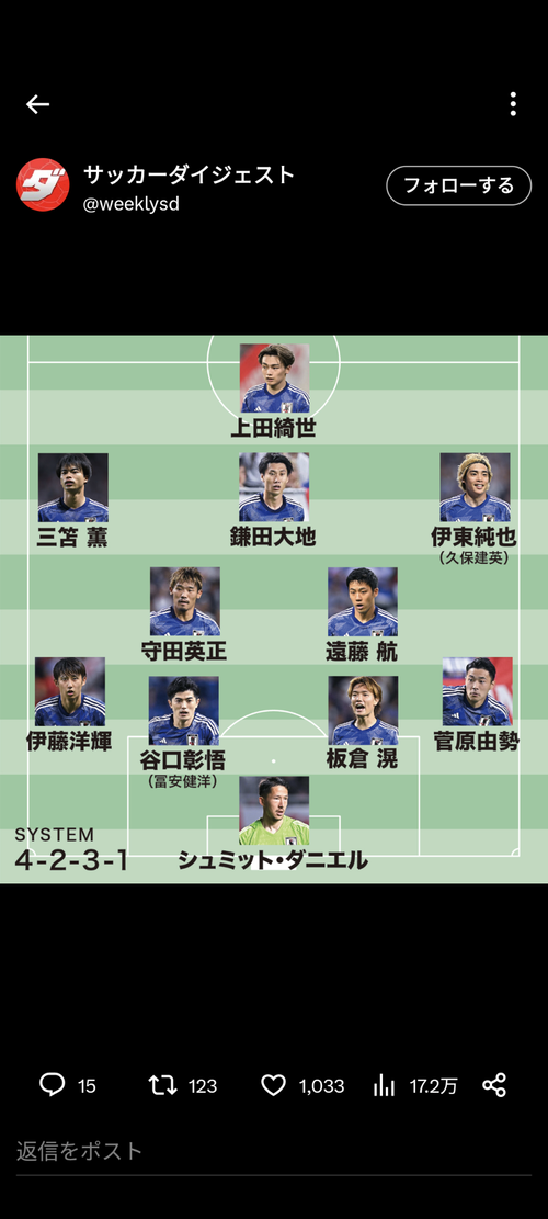 - 【悲報】サッカー日本代表⚽スタメン予想が発表される