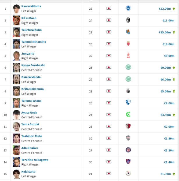 - 【朗報】サッカー日本代表…FW選手の市場価値がこちらwwwwwww