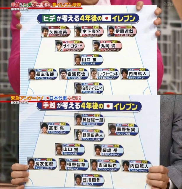 - 【朗報】手越祐也が考える4年後の日本代表イレブンが渋すぎるwwwwww